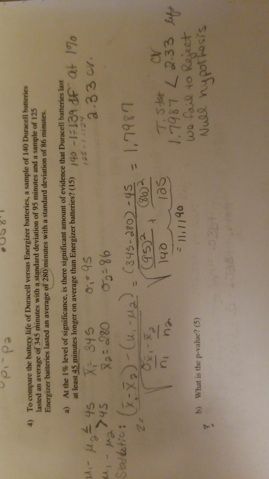 Solved To Compare The Battery Life Of Duracell Versus Ene