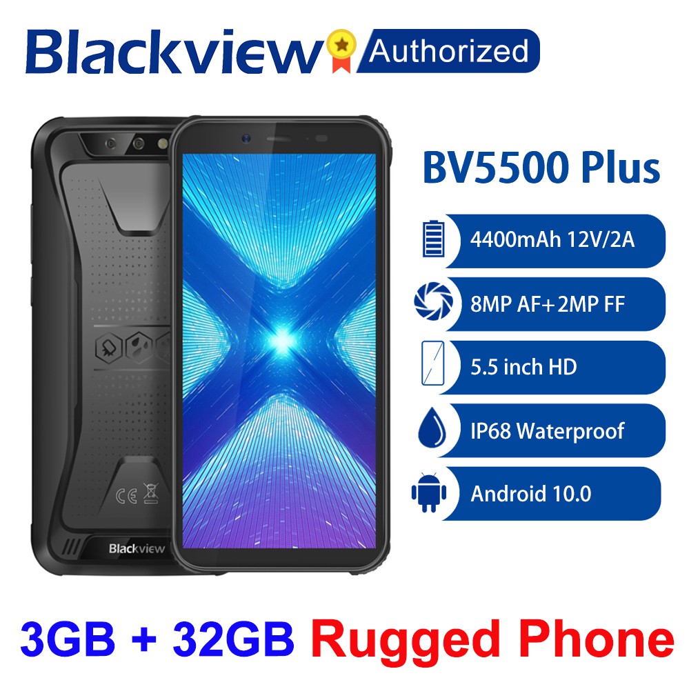Blackview Bv5500 Plus Smartphone Ip68 Waterproof 5 5 Inch Hd Android 10 3gb 32gb Mobile Phone 8 0mp Camera Nfc Rugged 4400mah Blackview Global Official Shop