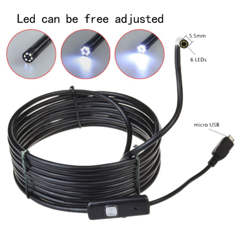 Black 5m 6 Led 5 5mm Lens 2in1 Android Endoscope Waterproof