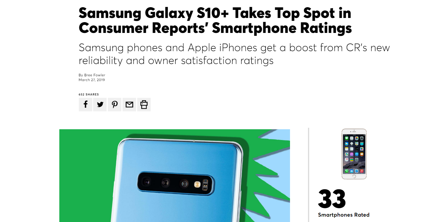 Consumer Reports Gives The Samsung Galaxy S10 Top Spot