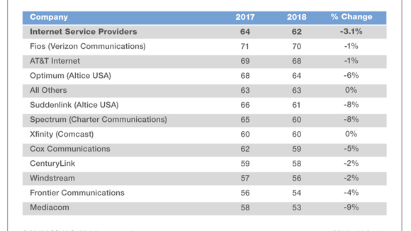 Consumer Satisfaction With Cable Internet Service Providers Drops