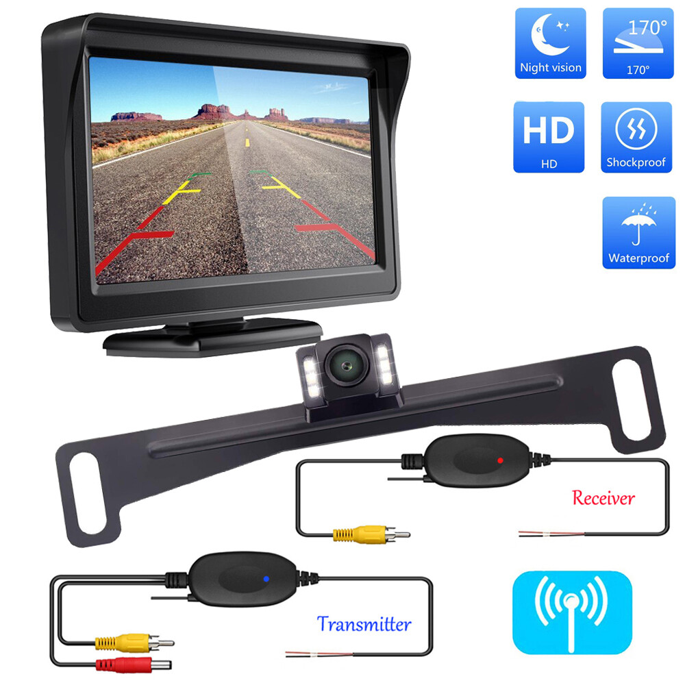 Wireless Backup Camera 4 3 Monitor Kit License Plate Rear View